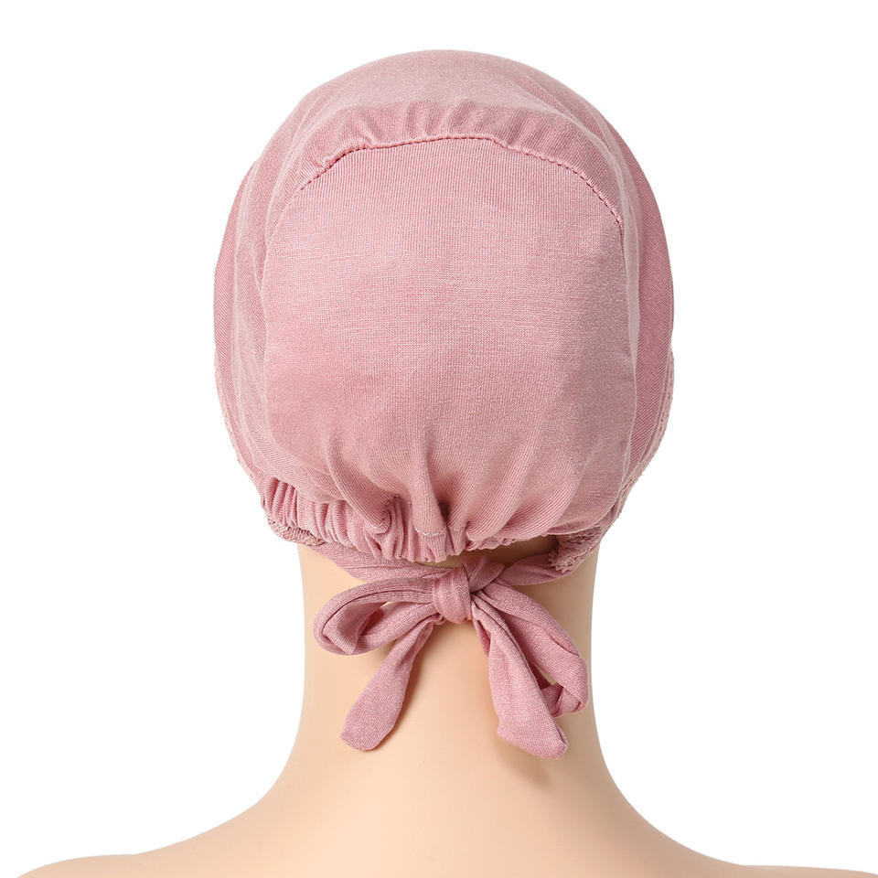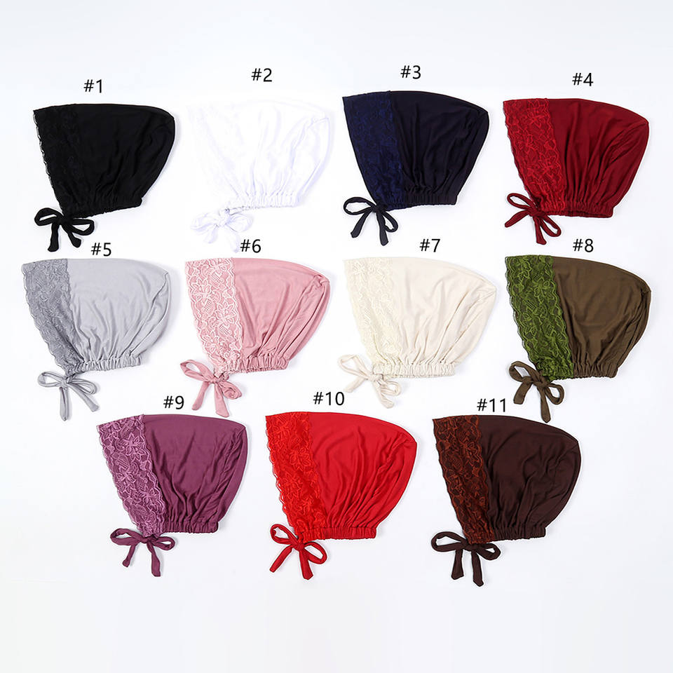 Bonnet Turban Doux à Nouer, en Jersey Stretch, Sous-Hijab, Voile de Tête pour Femme Musulmane, avec Capuches en Patchwork de Dentelle et Dos Élastique
