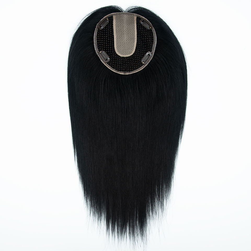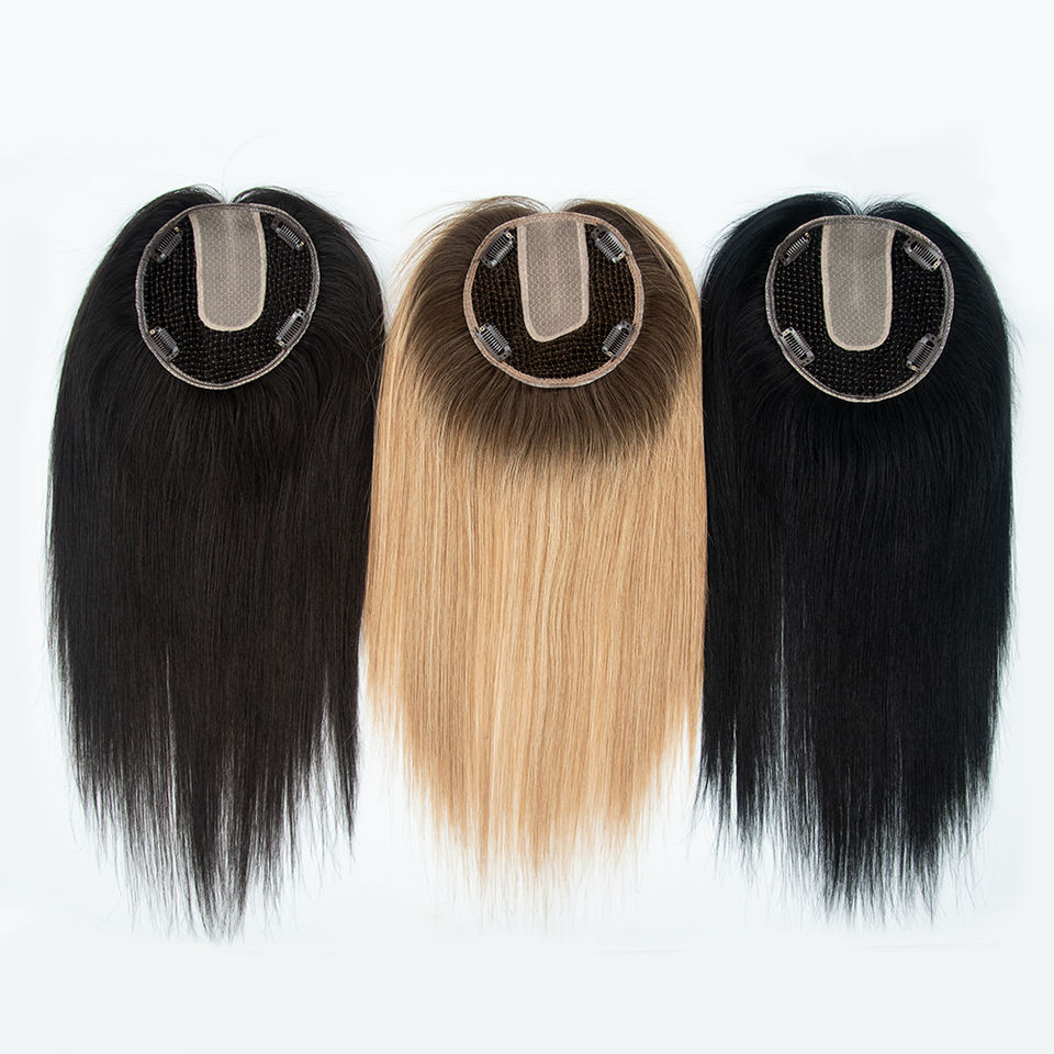 Topper de cheveux humains en dentelle de soie, 100% cheveux vierges russes Remy, avec dentelle suisse naturelle respirante, pour femmes