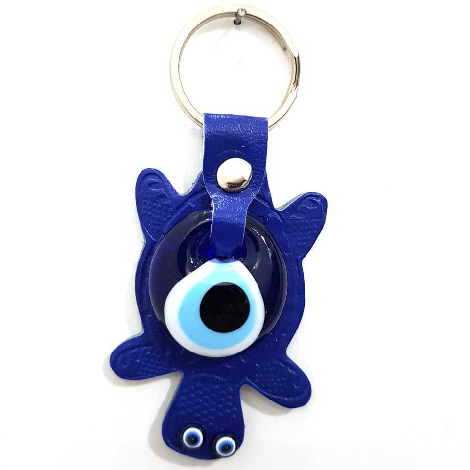 Lacivert Nazar Boncuklu Deri Kaplumbağa Glass Keychains Unique and Stylish Anahtarlık Product