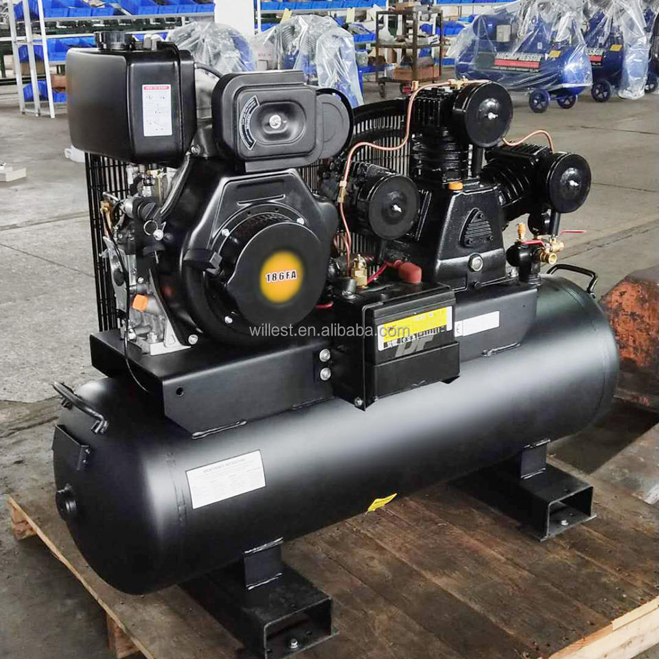 Lacme Reciprocating Piston Air Compressor WILLEST 10 hp Diesel Engine Belt Driven BWI75LD100H160F 10 bar Diesel Compressor