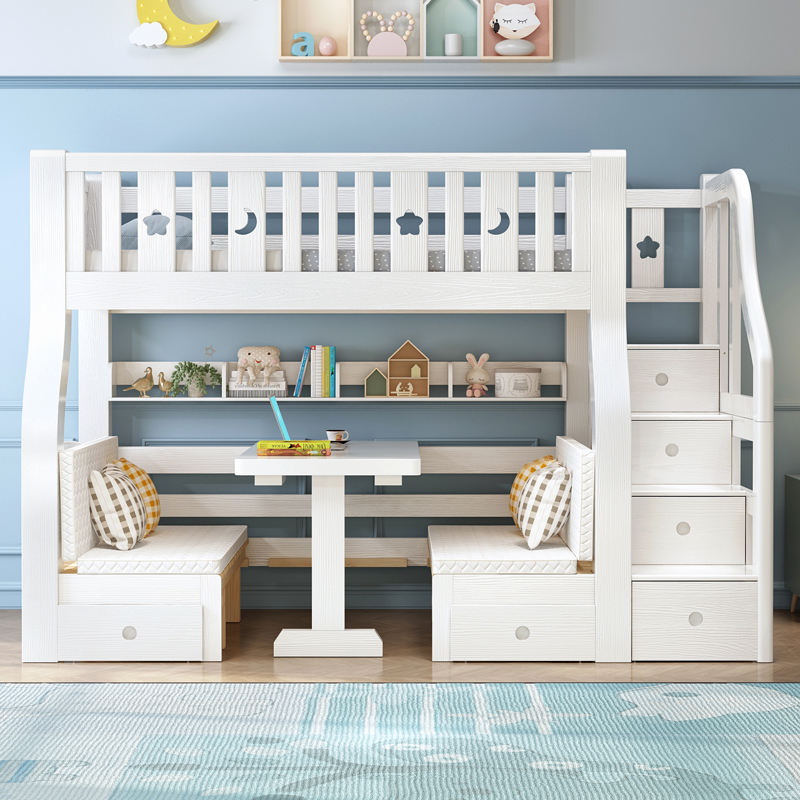 Lits superposés modernes en bois massif laqué pour enfants avec rangement, vente junior
