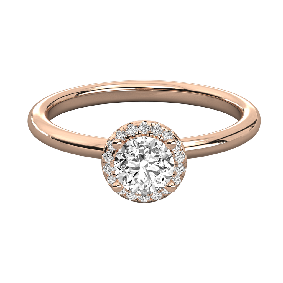 Bague solitaire en or 14 carats pour femmes, diamant rond, bijoux élégants et luxueux