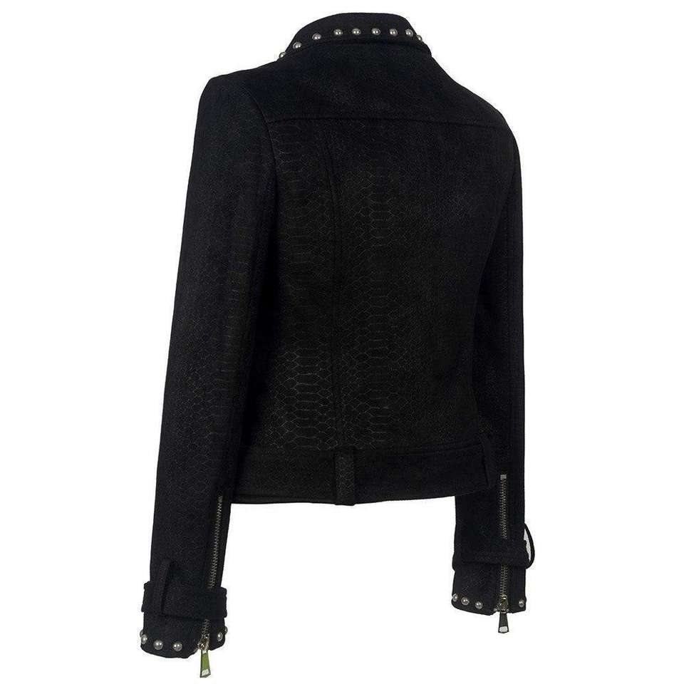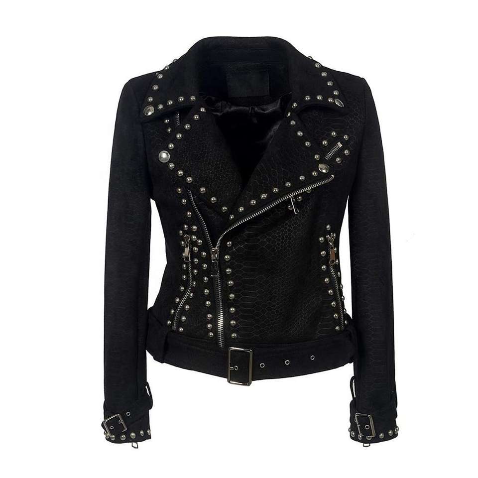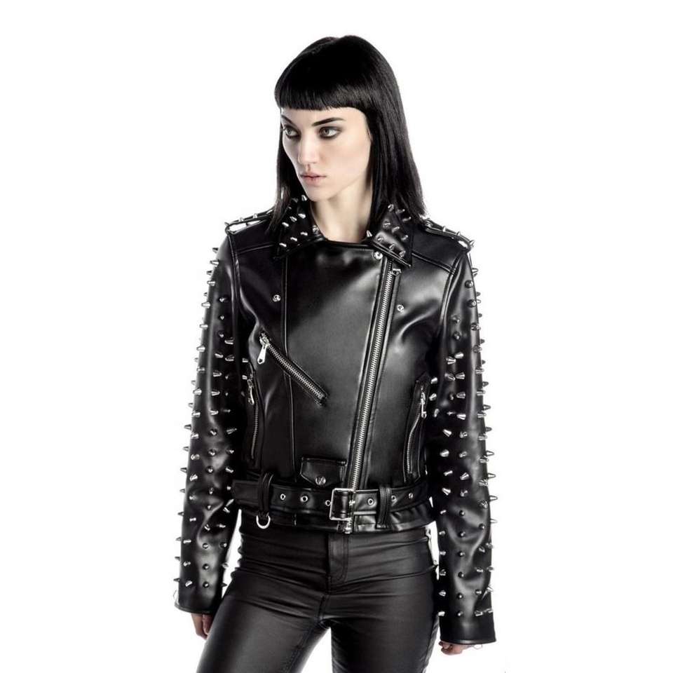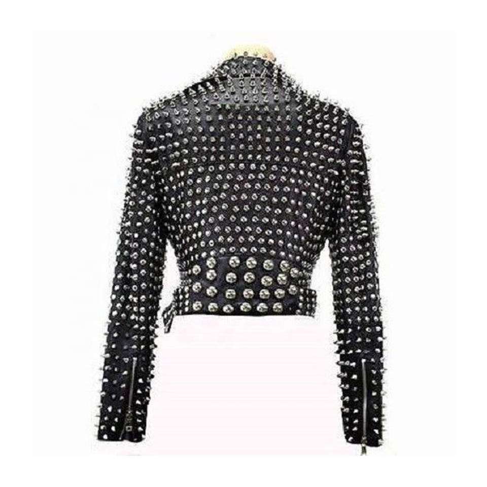 Veste noire pour femmes, faite à la main, multi-cloutée, à manches longues, en cuir de vachette, style punk, avec rivets.