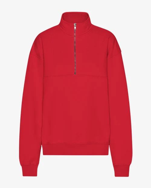 Mesdames CVC Sweatshirt polaire à manches longues et fermeture éclair Logo personnalisé Rouge écarlate Automne Meilleure qualité Export Bangladesh