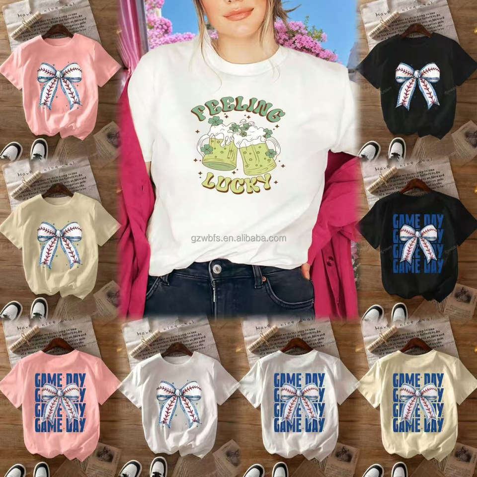 Ladies Casual Summer Outdoor Sports Top Gold Lip Print Flannel Denim T-Shirt Short Sleeves Batik for Holidays Seasonal Holidays