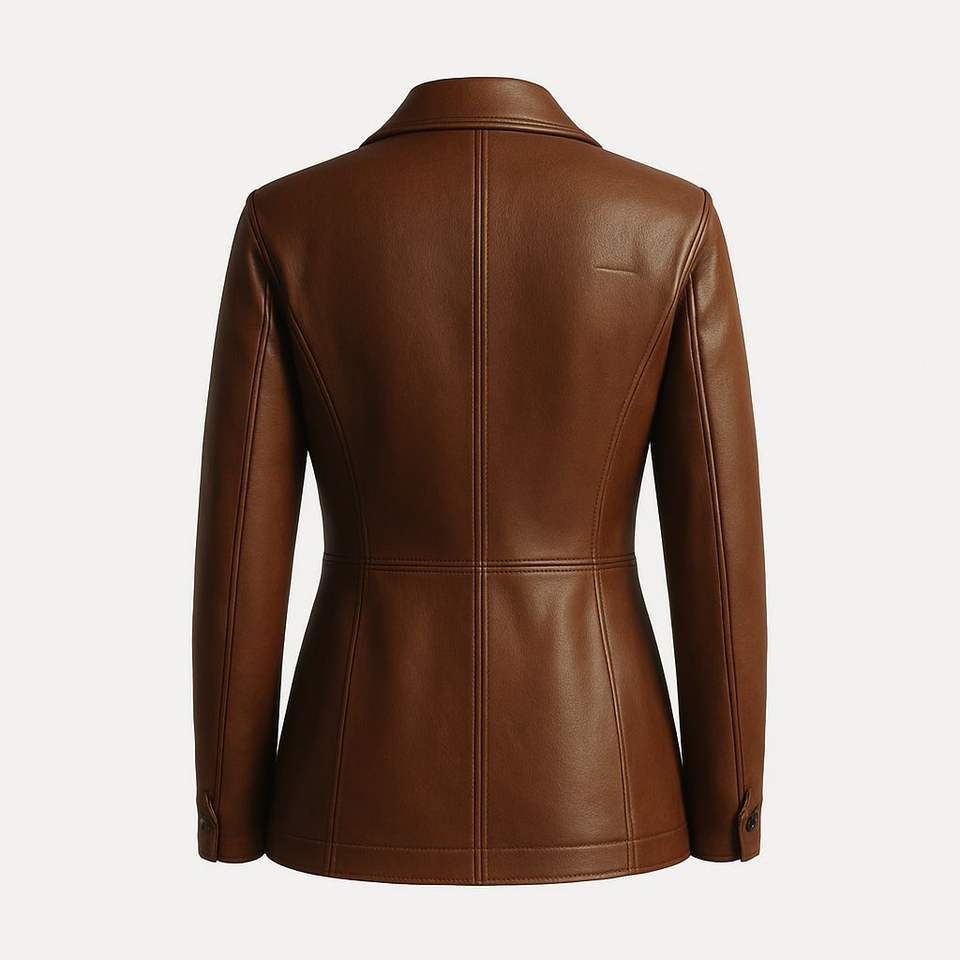 Ladies Classic Genuine Leather Casual Jacket with Flap Pockets and Waterproof