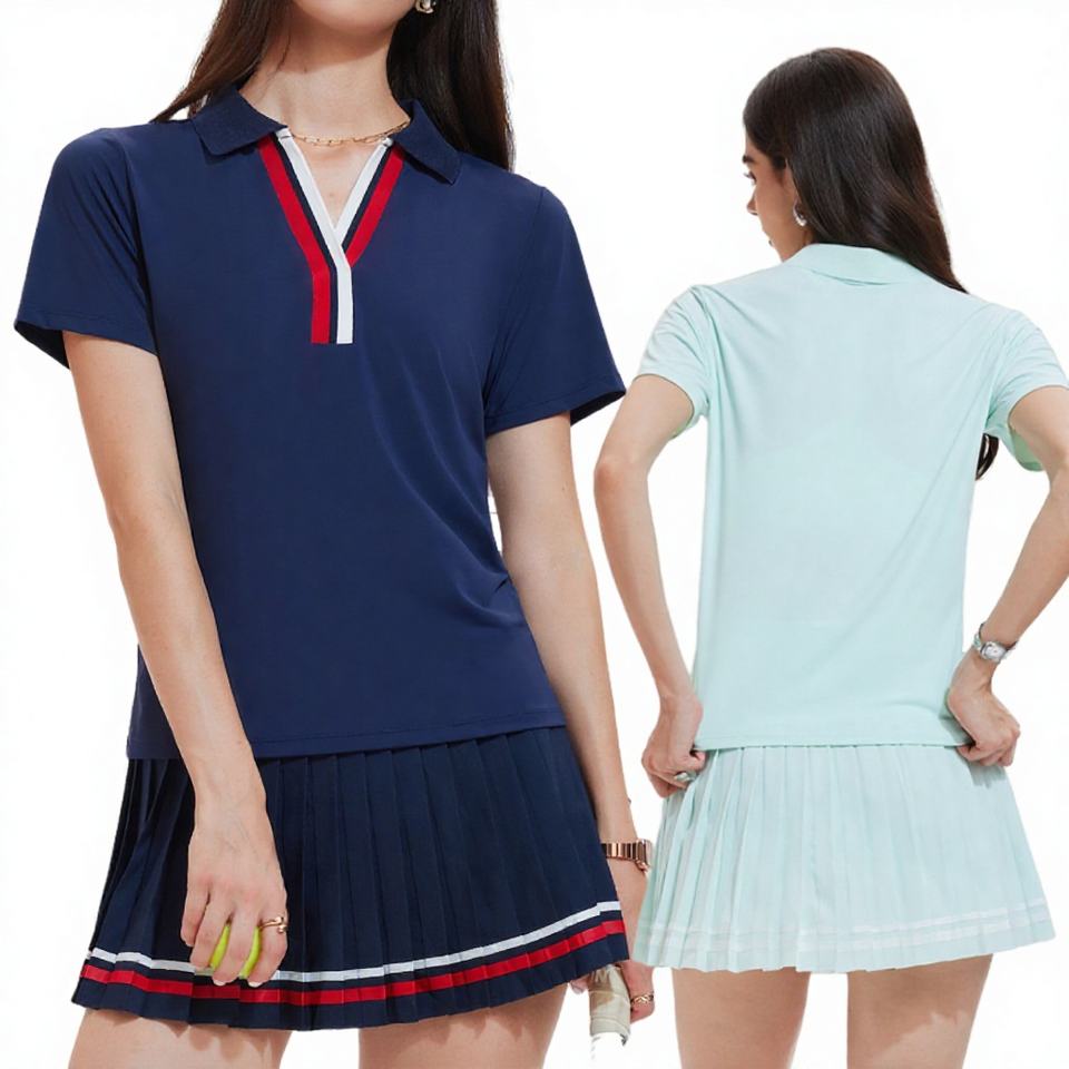 Ensemble de vêtements de golf et de tennis pour femmes, couleur contrastée, t-shirt à col en V, jupe plissée avec short, respirant, séchage rapide