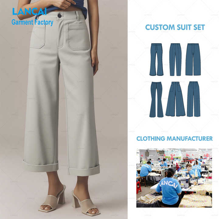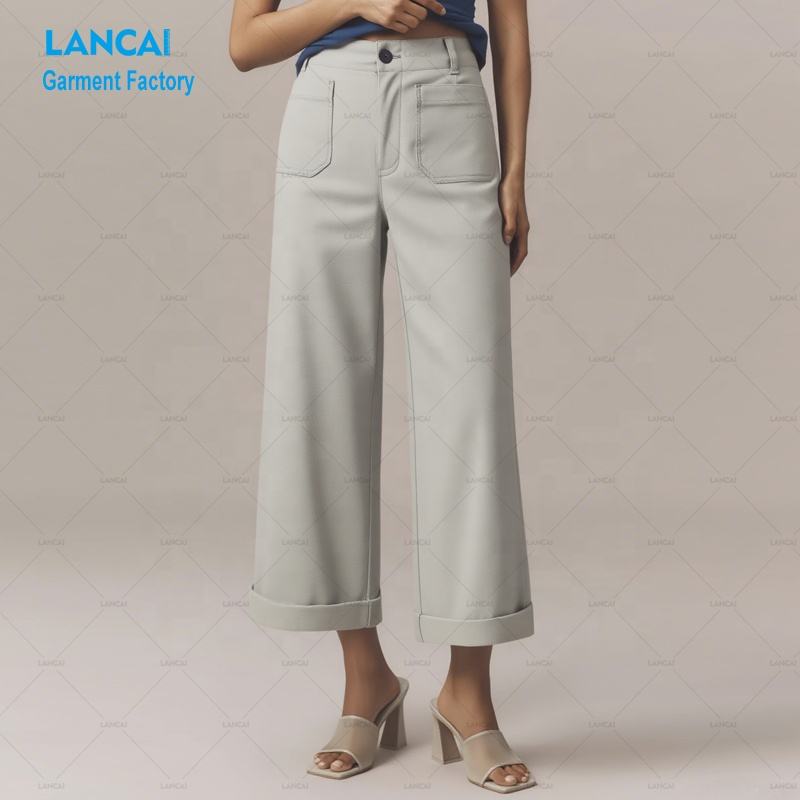 Pantalon large et droit pour femme, coupe courte, personnalisé, en coton et lin de haute qualité, style décontracté et formel pour le bureau