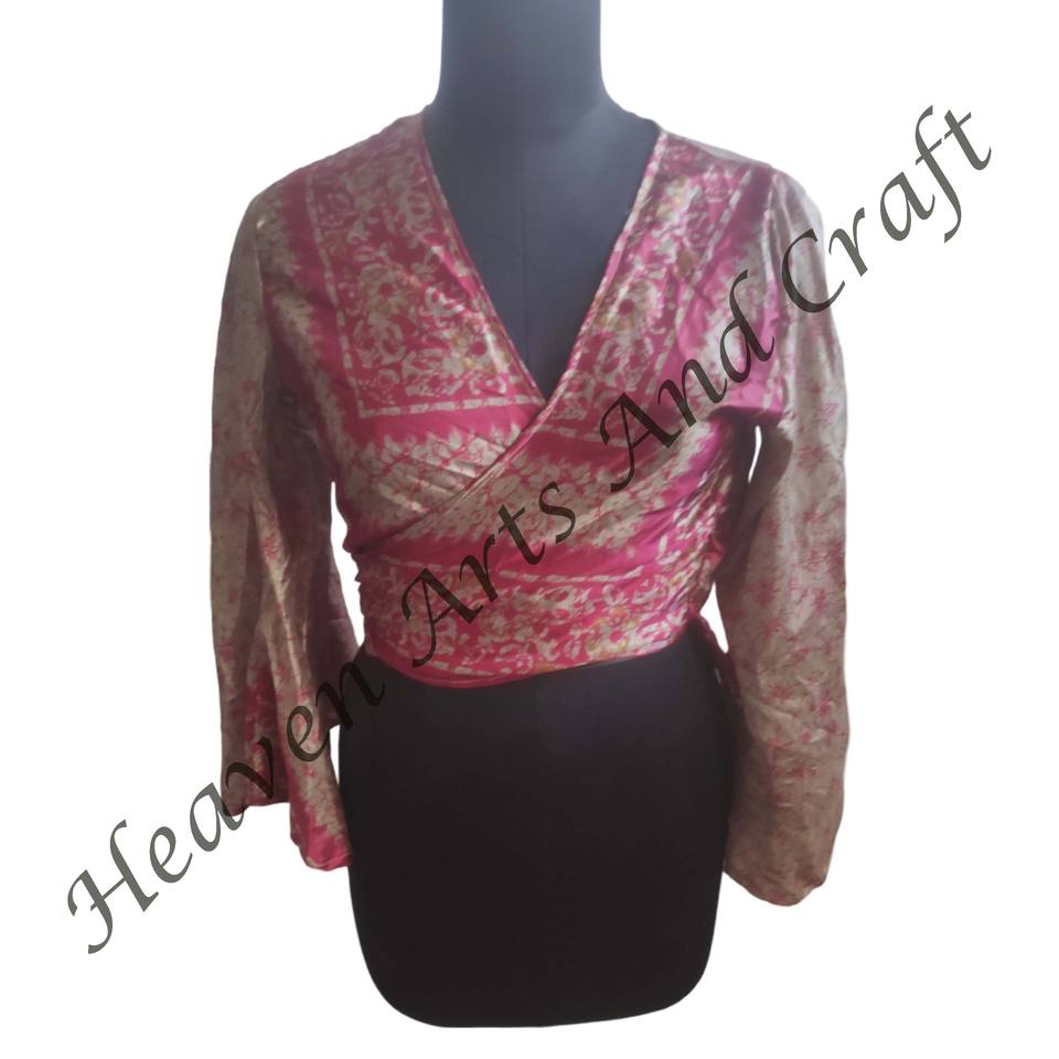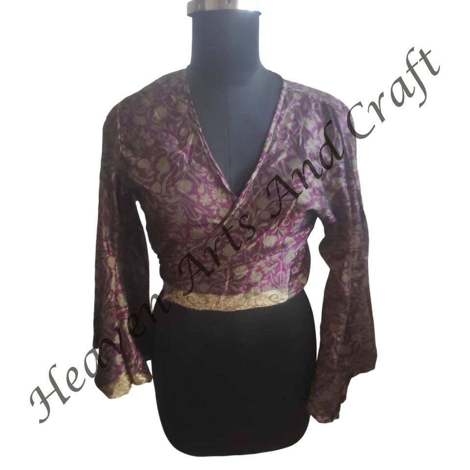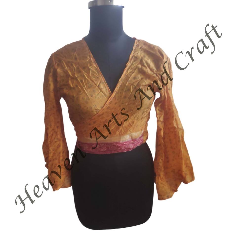 Numéro de Type:Recycle Sari Silk Tie Tops Bell Sleeves