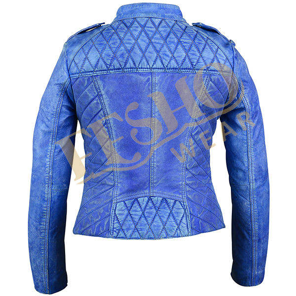 Denim Blue Colour leather jacket:Washed Leather Jacket