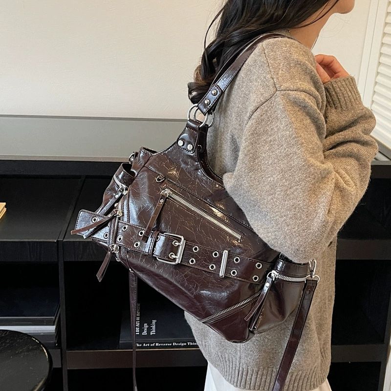 Ladies Fashion Y2K Rivet Street Sac à bandoulière personnalisé Multiple Pockets Retro Spicy Girl Crossbody Bag Oeillets Belt Handbag