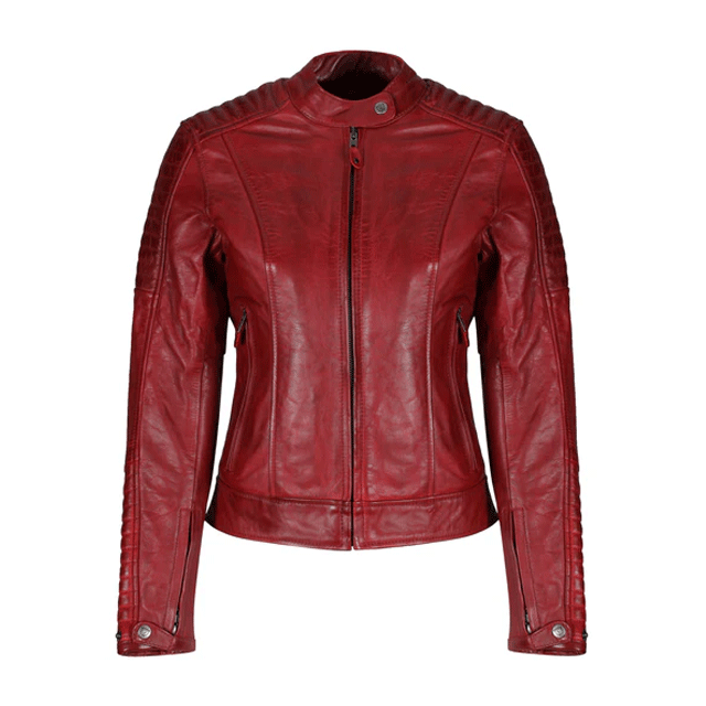 Veste de moto en cuir véritable pour femmes Protections blindées CE rouges Veste de moto de course pour femmes