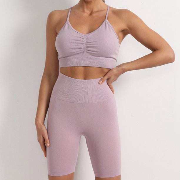 Ensemble de vêtements de sport pour femmes Nouveau style de short de soutien-gorge de meilleure qualité Motif solide Toile Tissu au-dessus du genou Bas prix quantité minimale de commande 2pcs à vendre