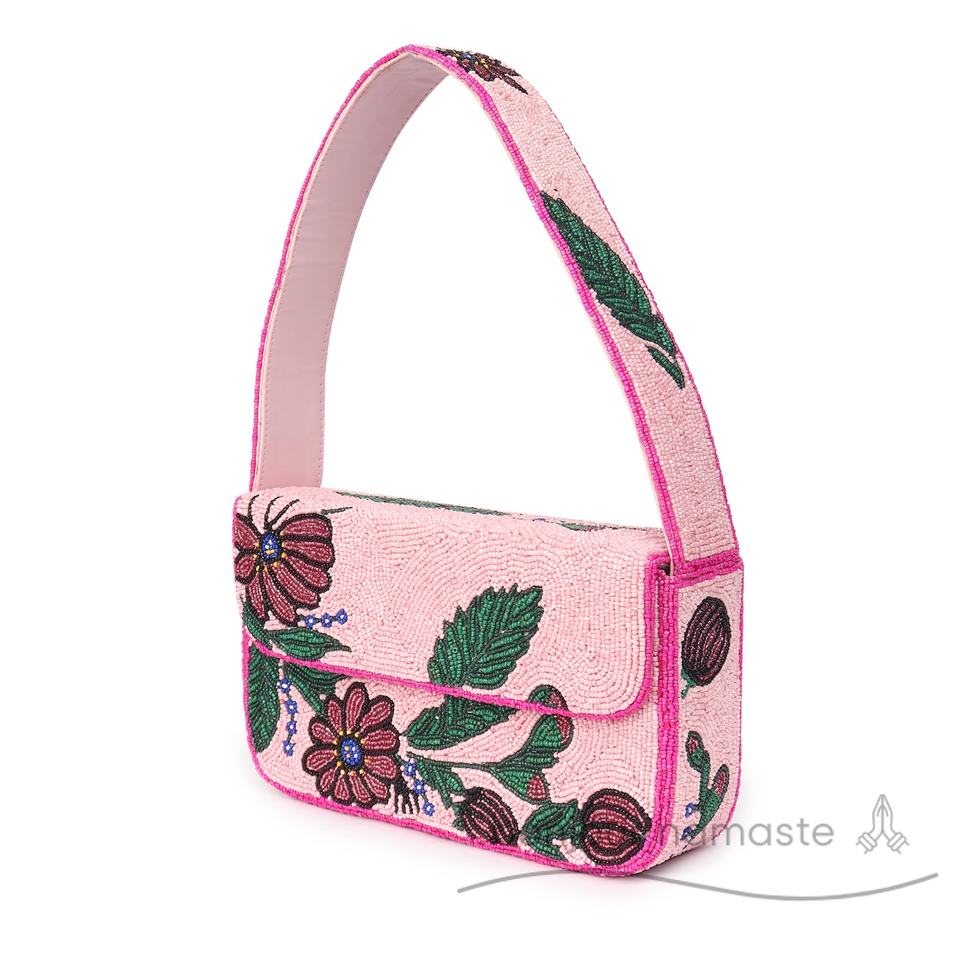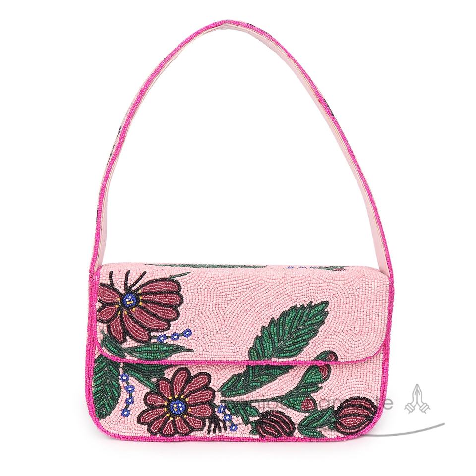 Sac à main pour femmes, fermeture ouverte, broderie à la main, perles de verre, utilisation pour les soirées, voyage, artisanat fait main pour un design floral