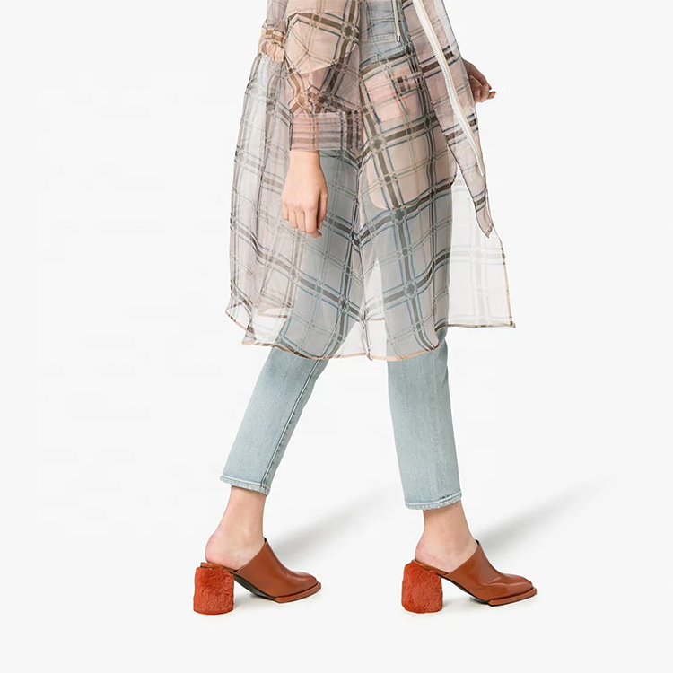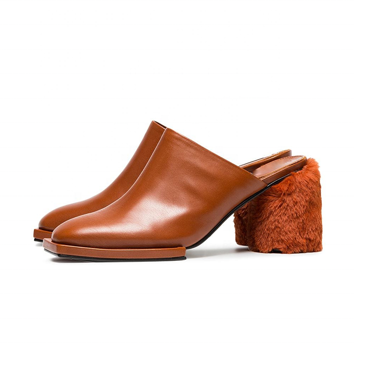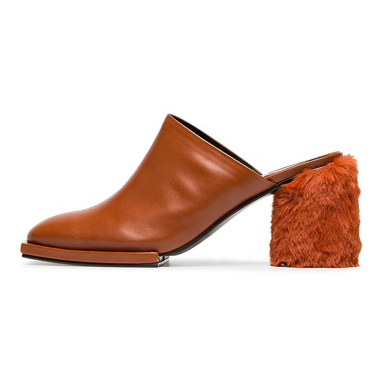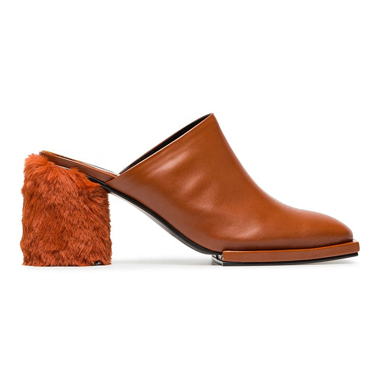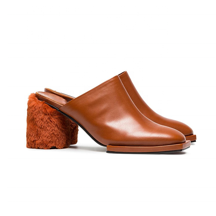 Nom du produit:Chaussures de pantoufle de mule de fourrure de talon de bloc de cuir de dames
