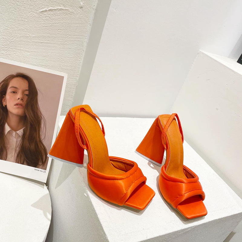 Packaging Details:Sandales à talons hauts pour dames, chaussures d'été en Satin épais Triangle Europe amérique pour femmes Sexy 2022 mode autres chaussures tendance