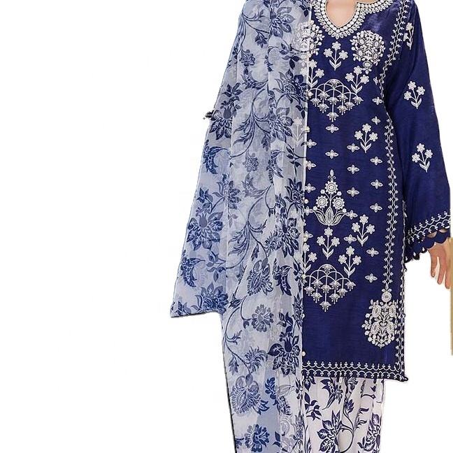 Salwar Kameez pour femmes, de haute qualité, en lin, soie et coton, style moderne, brodé, design indien pakistanais, occasion spéciale, été, tendance