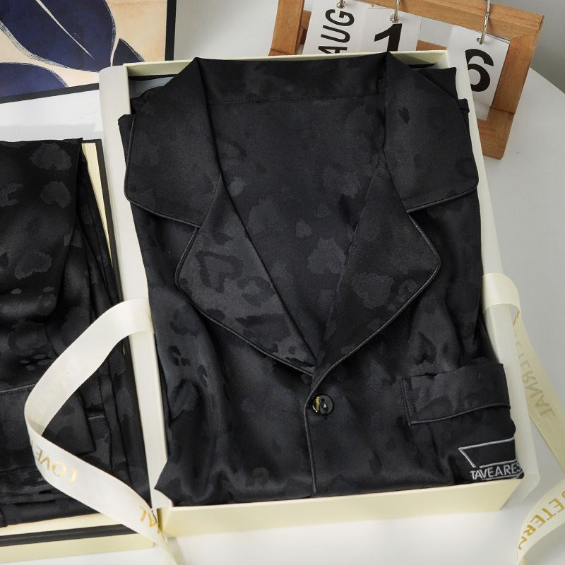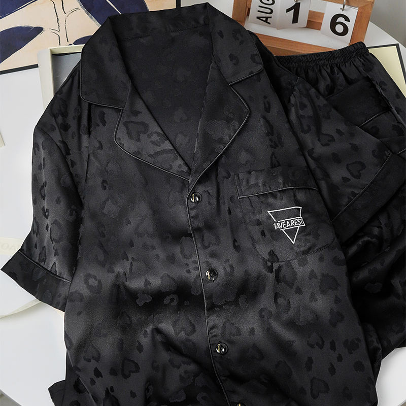 Pyjamas pour dames en soie glacée à motif léopard Pantalon d'été à manches courtes Vêtements de maison Cadeau de luxe pour les meilleurs amis