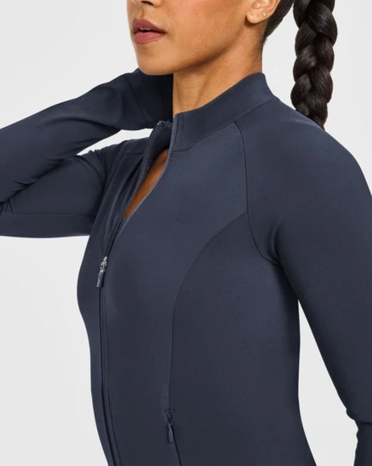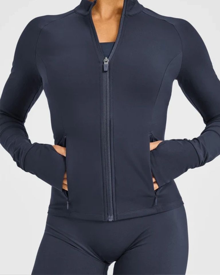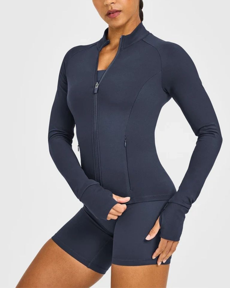 Blouson bomber léger et respirant pour femme, coupe ajustée, ourlet ajustable, coupe-vent avec fente dorsale, idéal pour la gym, la course en extérieur et la protection contre la poussière.