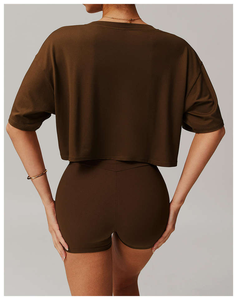 Ensembles de sport pour femmes : hauts courts amples et shorts sexy, vêtements de sport pour la gym, le fitness, le pilates et le yoga, séchage rapide et respirant