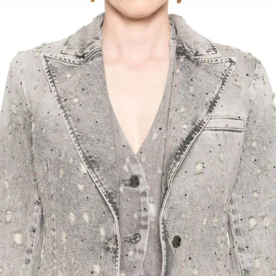 Veste en jean rose délavée pour femmes, multicolore, printemps, automne, avec poches plaquées