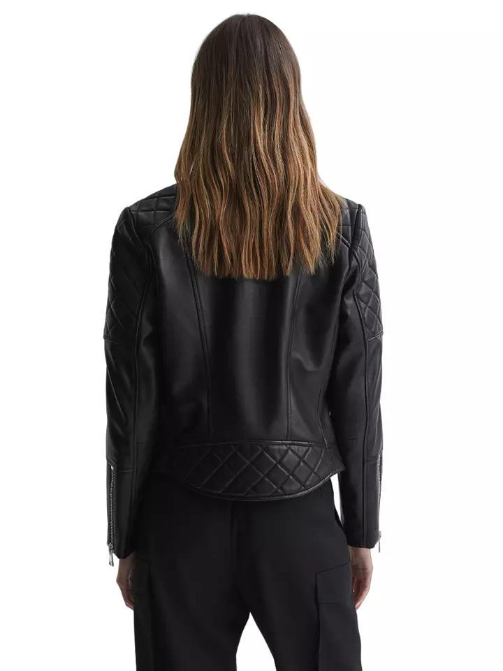 Veste en cuir véritable pour dames Veste décontractée à fermeture éclair noire matelassée sans col Veste personnalisée respirante MS-LJ-0076