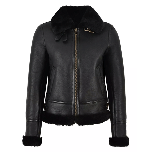 Blouson à capuche en cuir de mouton pour femmes Blouson d'aviateur en cuir de mouton véritable pour femmes