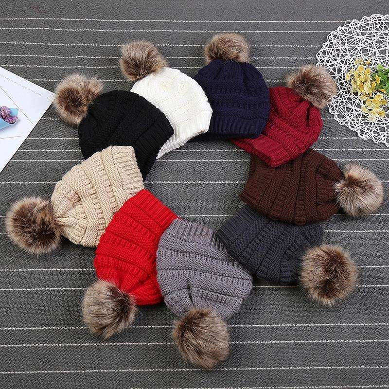 Keyword:Women beanie fur ball cap pom poms winter hat for girl 's knitted cap