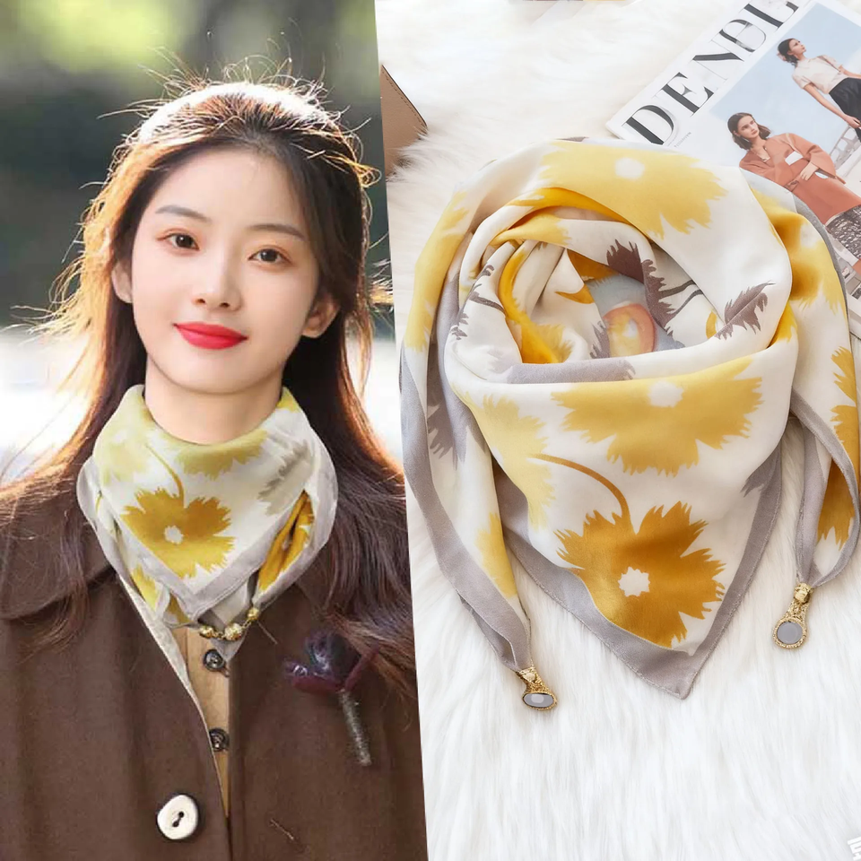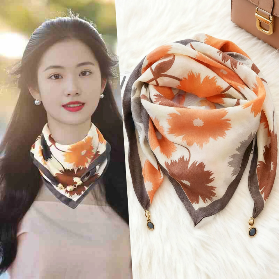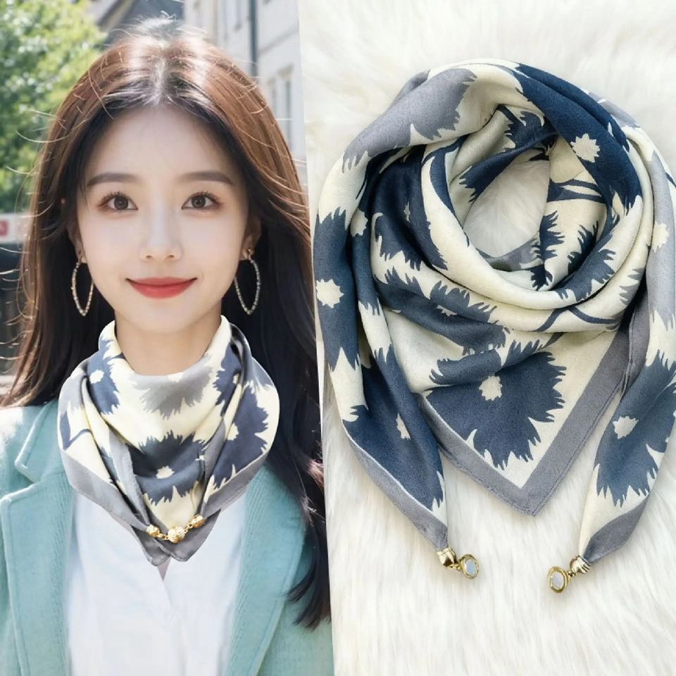 Écharpe en soie magnétique triangulaire pour femme, protection du cou, printemps-automne, en coton et lin, haut de gamme, pour garder au chaud