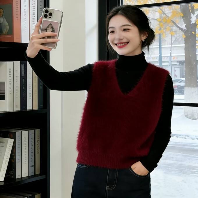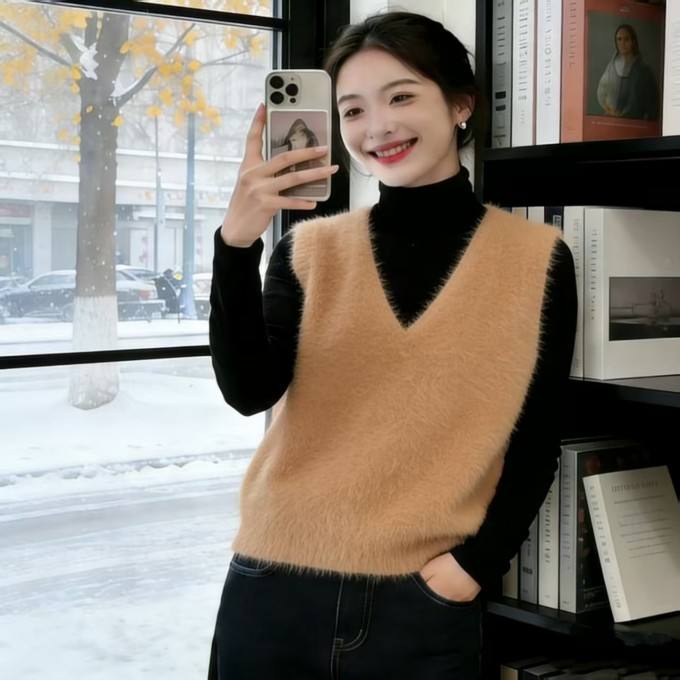 Pull sans manches en mohair à col en V pour femmes, nouvelle collection printemps