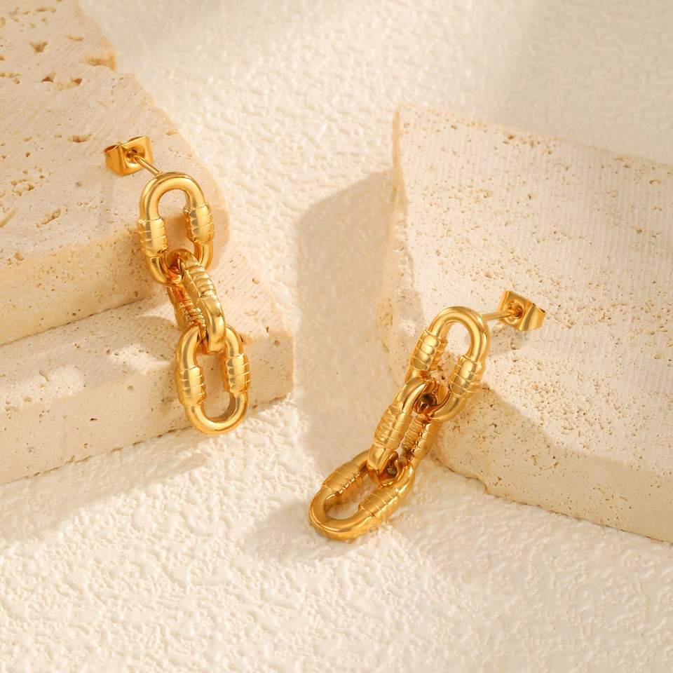 Boucles d'oreilles chaîne ovale embossée en acier inoxydable pour femmes Boucles d'oreilles simples rétro en or