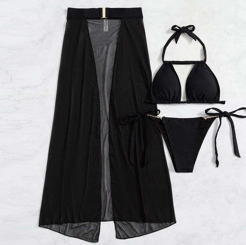 Maillot de bain pour dames Maillot de bain trois pièces fendu Bikini sexy Ensemble de maillot de bain d'été Écharpe de couverture