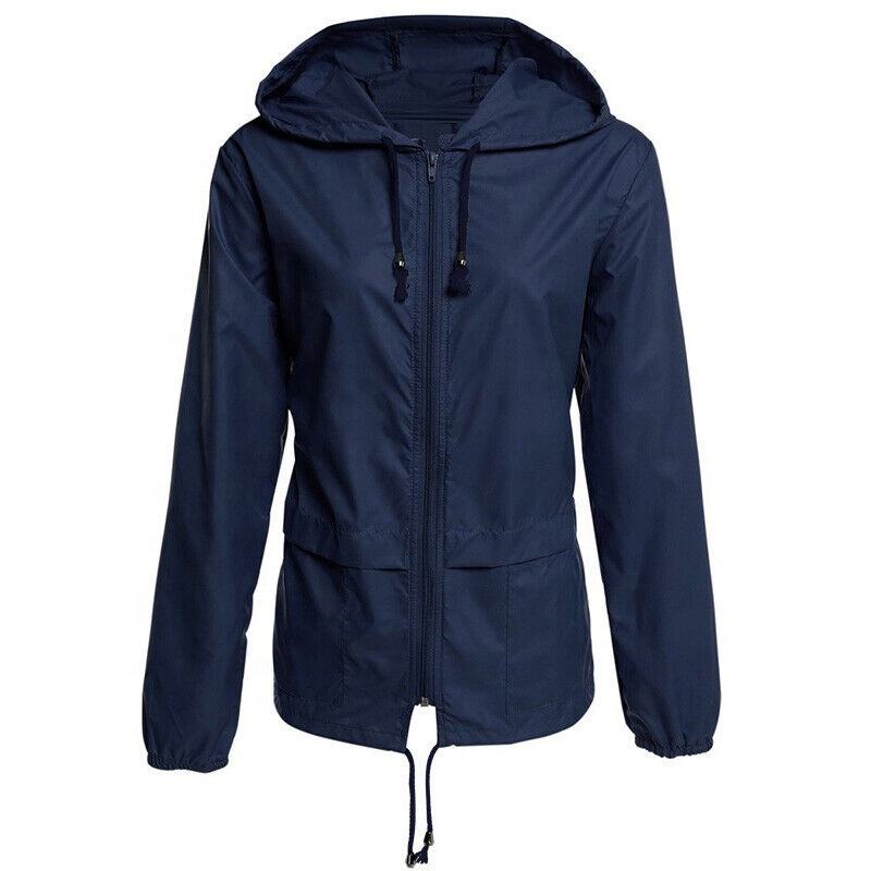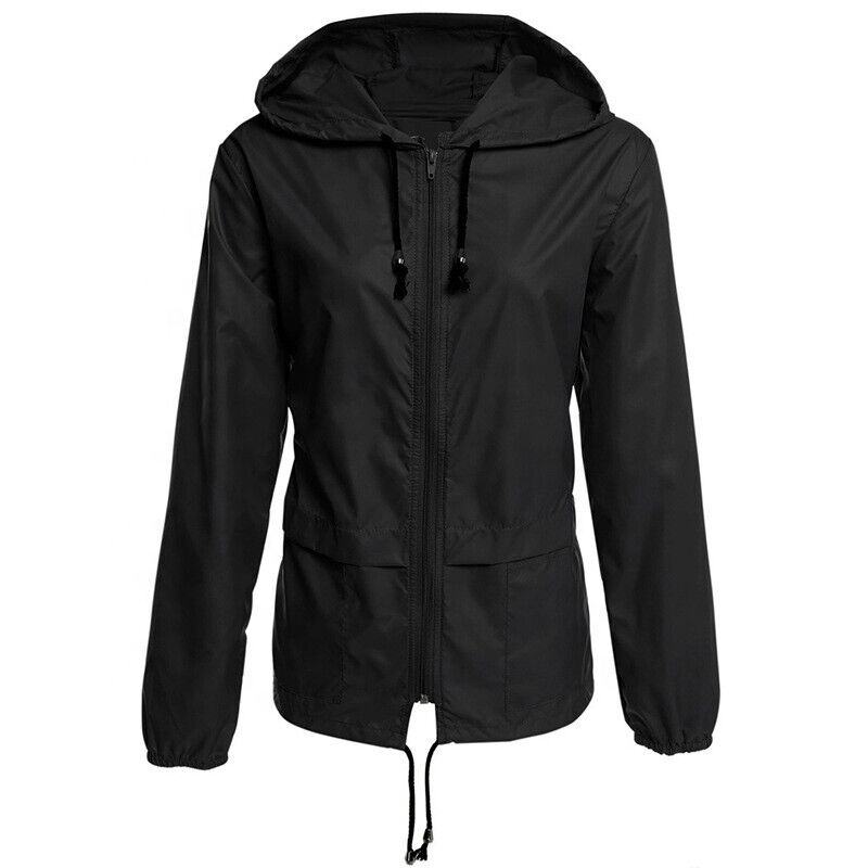Ladies Waterproof Jacket Meilleure qualité Zip Up Hooded Lightweight Windbreaker Coat Jacket Anorak Jacket