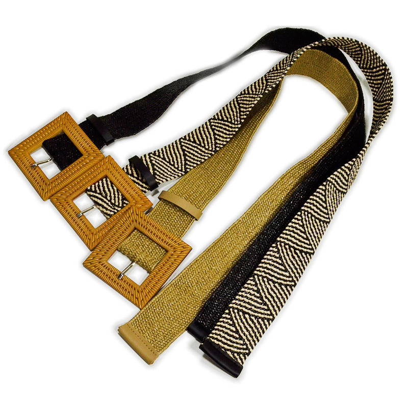 Nom du produit:Dames Large Paille Tressé Ceinture Tissée Femelle Carré Boucle En Bois