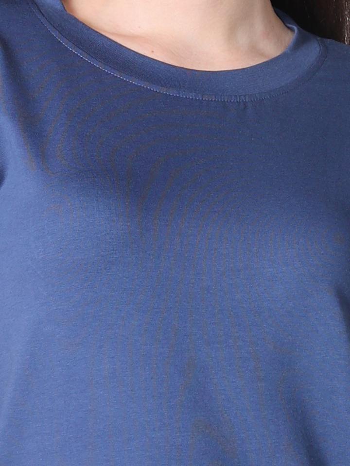 T-shirt élégant pour femmes, col extensible, manches courtes, tissu en toile bleu clair, 100% coton, tailles grandes, t-shirts pour femmes