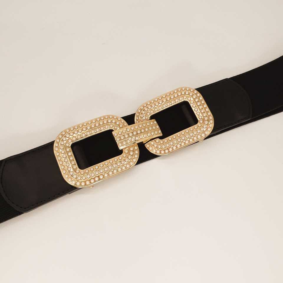 Ceinture à double boucle en strass incrusté pour femmes Simple Fashion Custom Western Coat Jeans Dress Decorative Belt PU Plastic Belts