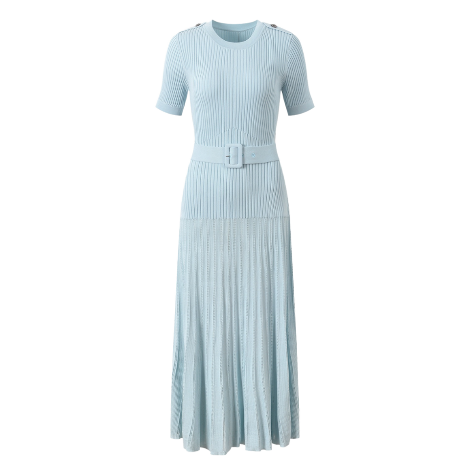 Robe pull pour femme, style élégant toutes saisons, manches courtes, tricot, coupe droite, nylon, midi, décontractée