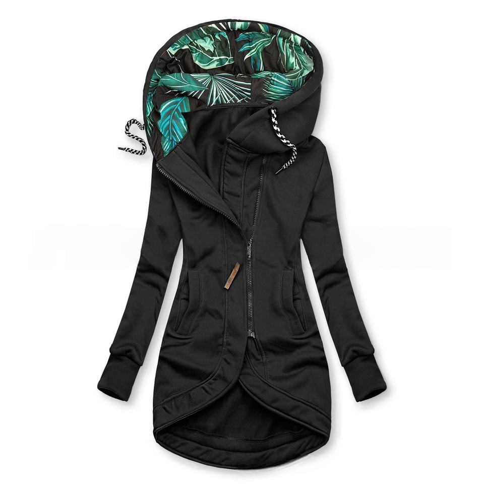 Veste à capuche zippée unie imprimée à manches longues et coupe ajustée pour femme