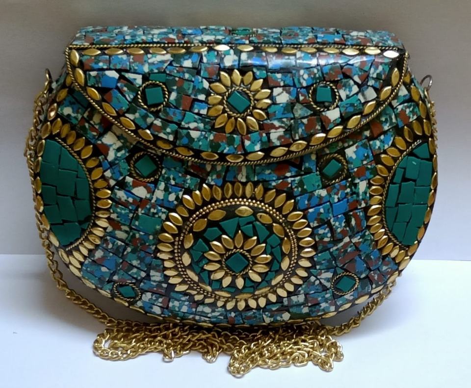 Sac à main en denim mosaïque tendance pour femme, style tribal bohème ethnique indien, fait à la main, multicolores