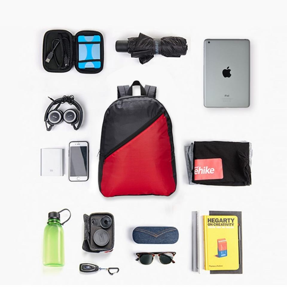 Sac à dos en polyester imperméable pliable avec bandoulière arquée, motif lettres et fermeture éclair, personnalisable, vente en gros, pour sports décontractés et randonnée