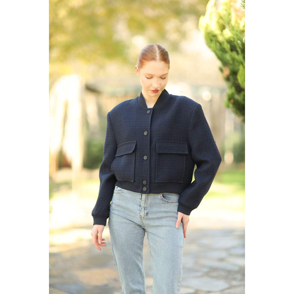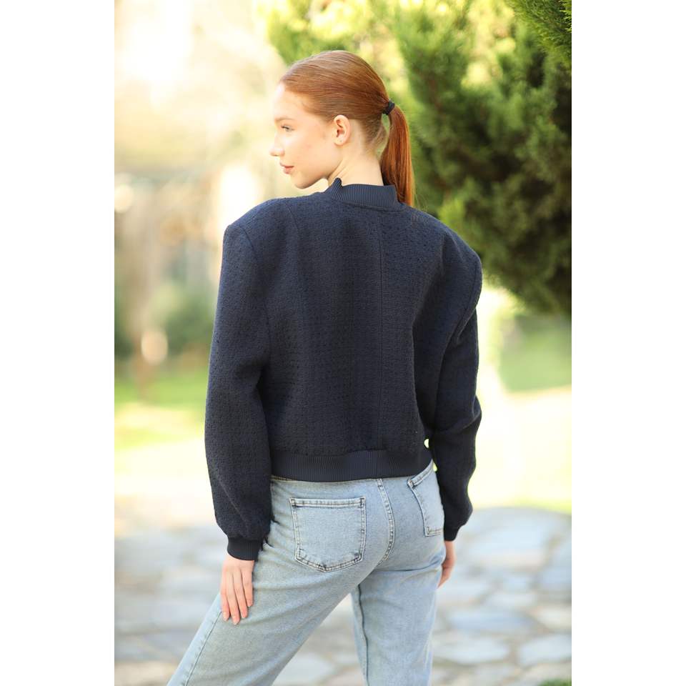 Lady's Black Satin Casual Jacket Fringed Decoration Striped Pattern Short Length Autumn Spring Season Polyester Custom Bomber
