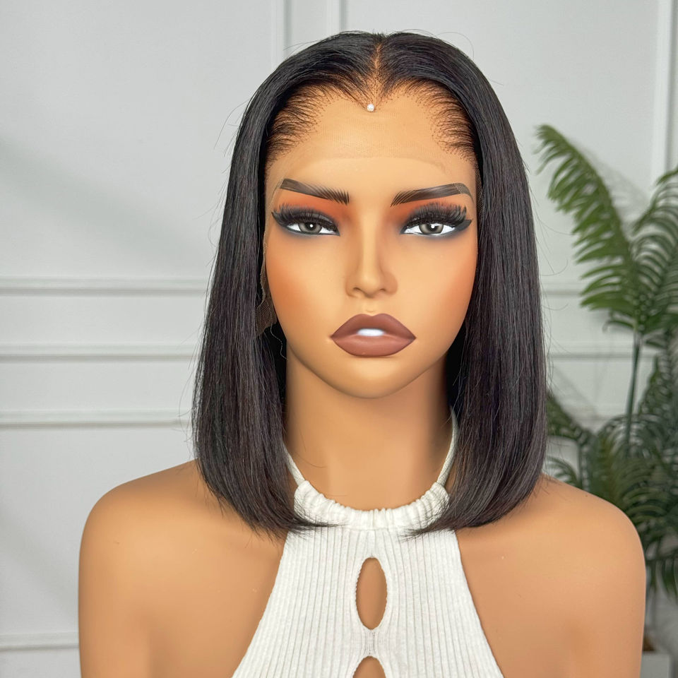 Perruque frontale HD 13*4 Lagos Hairline sans colle, 20 pouces, cheveux humains de qualité supérieure, coupe bob, couleur noir naturel