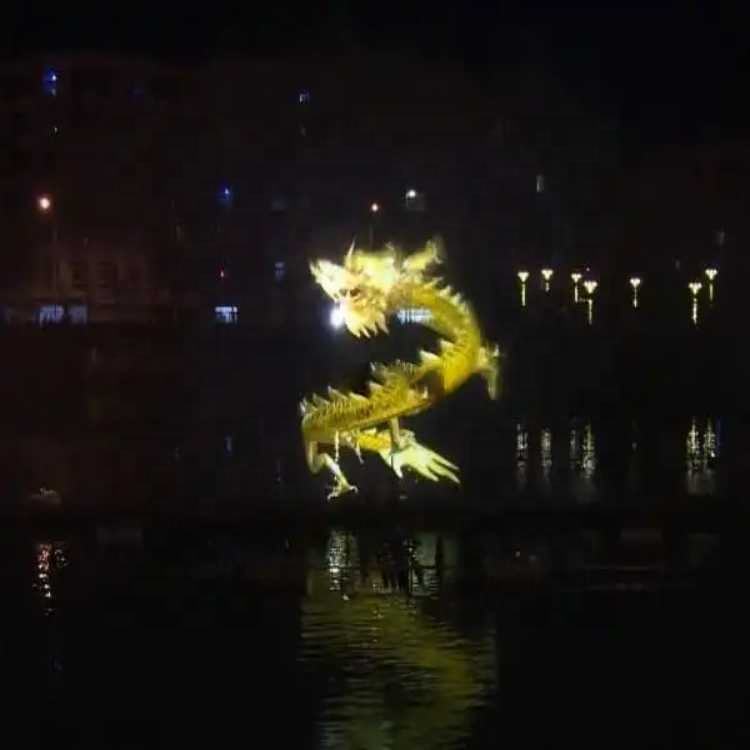 Écran d'eau holographique 7D flottant sur le lac, grande projection de film, fontaine dansante, spectacle de lumière laser pour événements et attractions