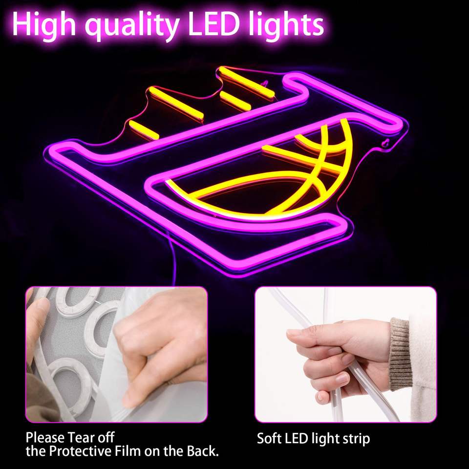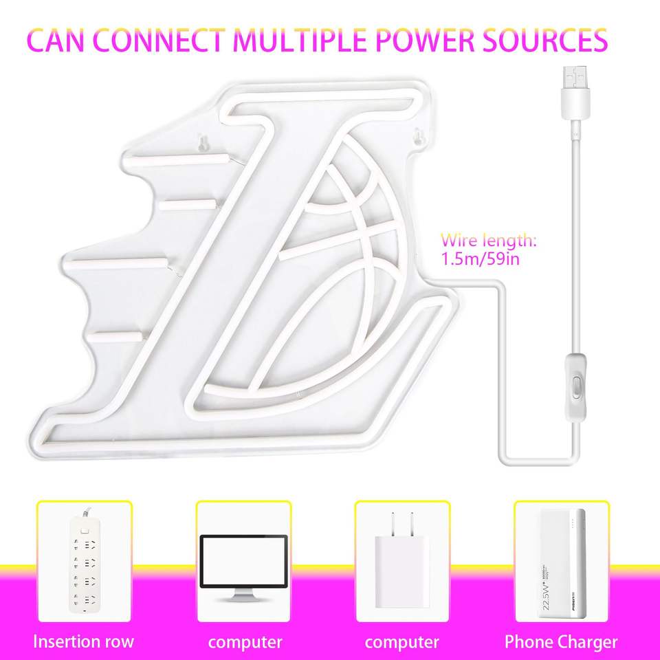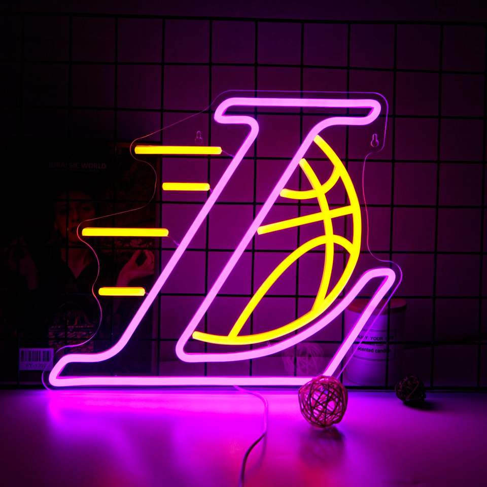Enseigne au néon avec logo de l'équipe sportive des Lakers, 16,1 x 13 pouces, Los Angeles, basket-ball, décoration de salle de sport, chambre à coucher, bar, club, chambre d'adolescent, entrée 5V