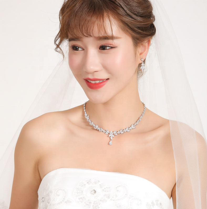 Keywords:Leaf Cubic Zirconia Necklace Earrings Br