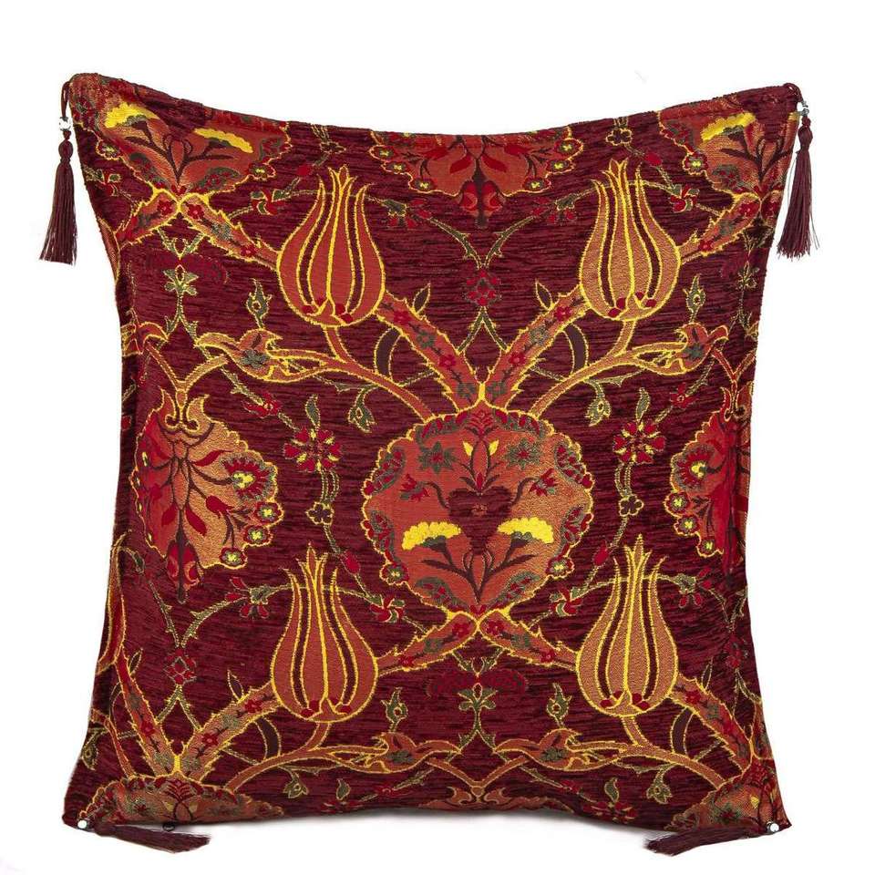 Lale Desenli Minder No 2 Bordo Luxury 45x45 cm Square Pattern Washable Design