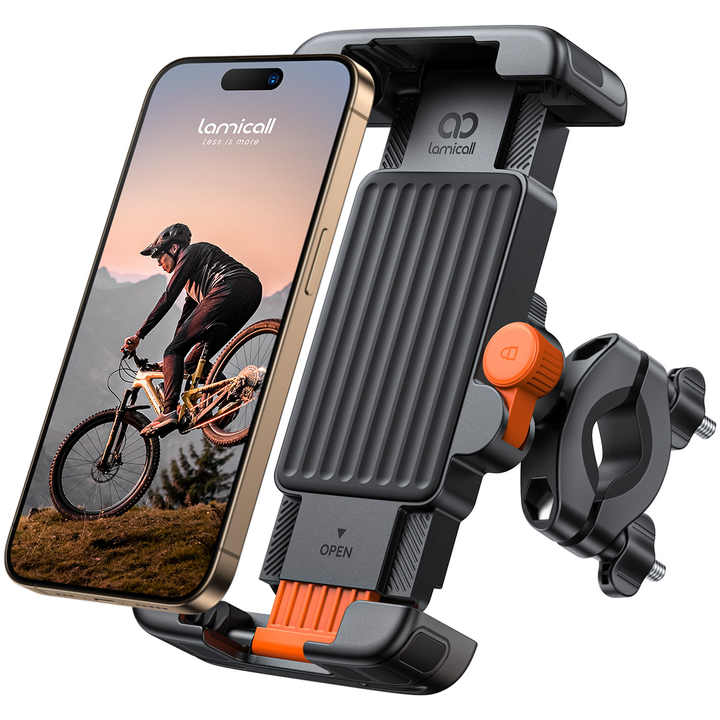 Support de téléphone pour vélo Lamicall BCSP20 anti-vibrations avec verrou de sécurité, fixation pliable pour guidon, dégagement rapide, support rotatif à 360° pour moto