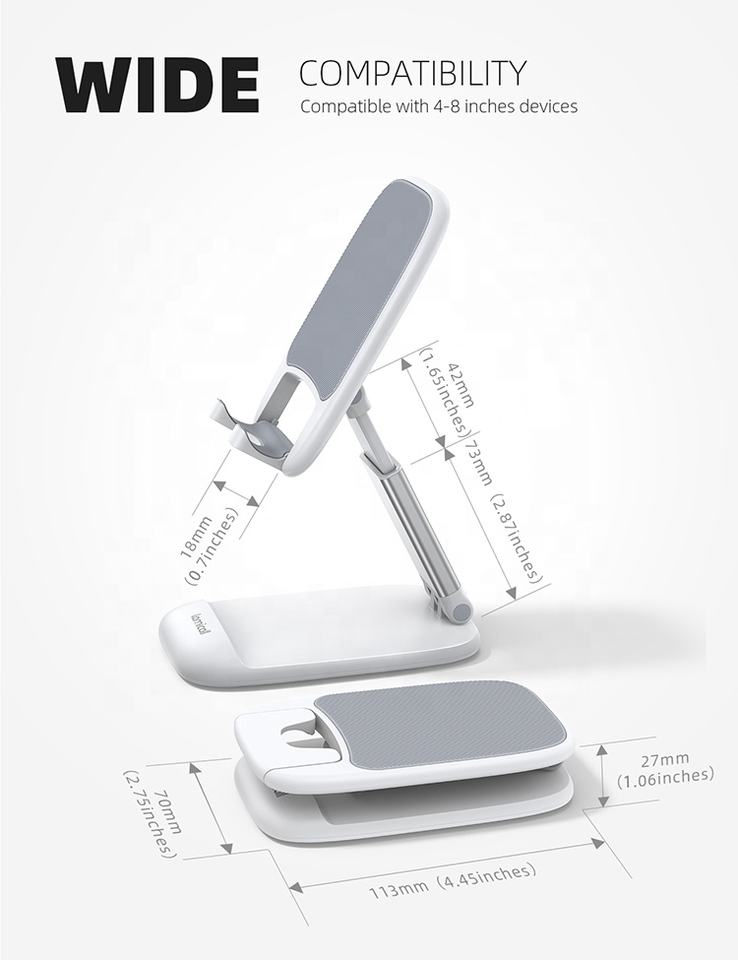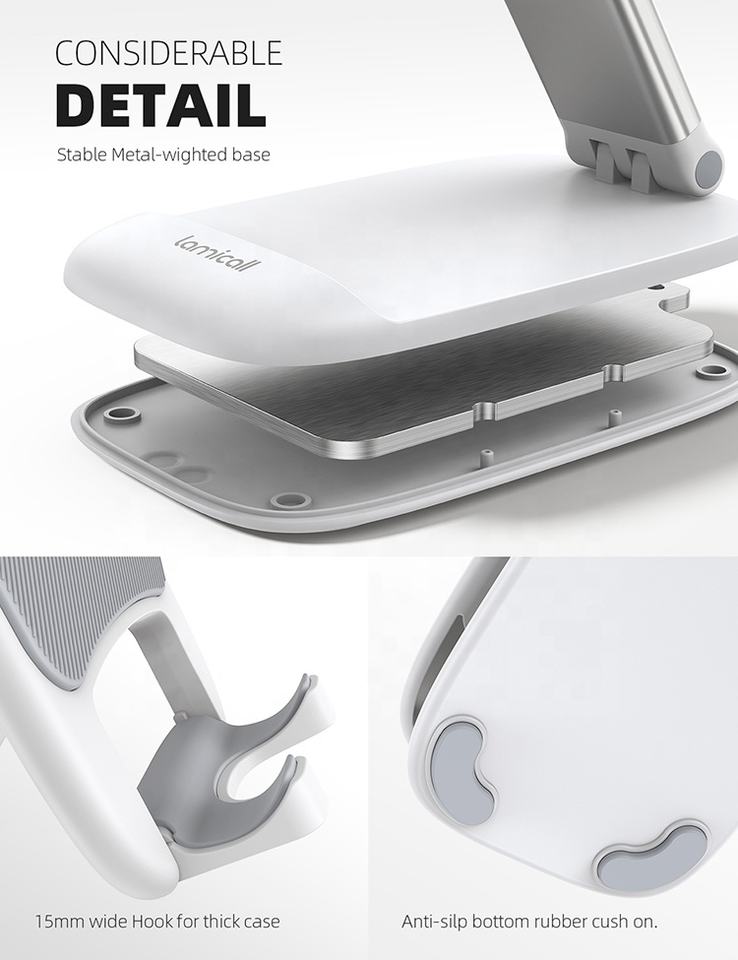 Support de téléphone portable ergonomique Lamicall DP13, support de bureau, angle réglable, support pliable, mains libres, reconnaissance faciale vidéo