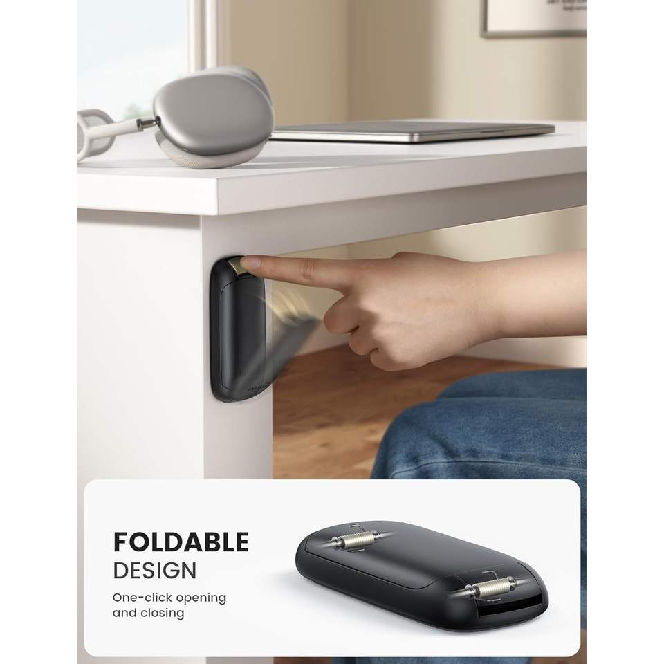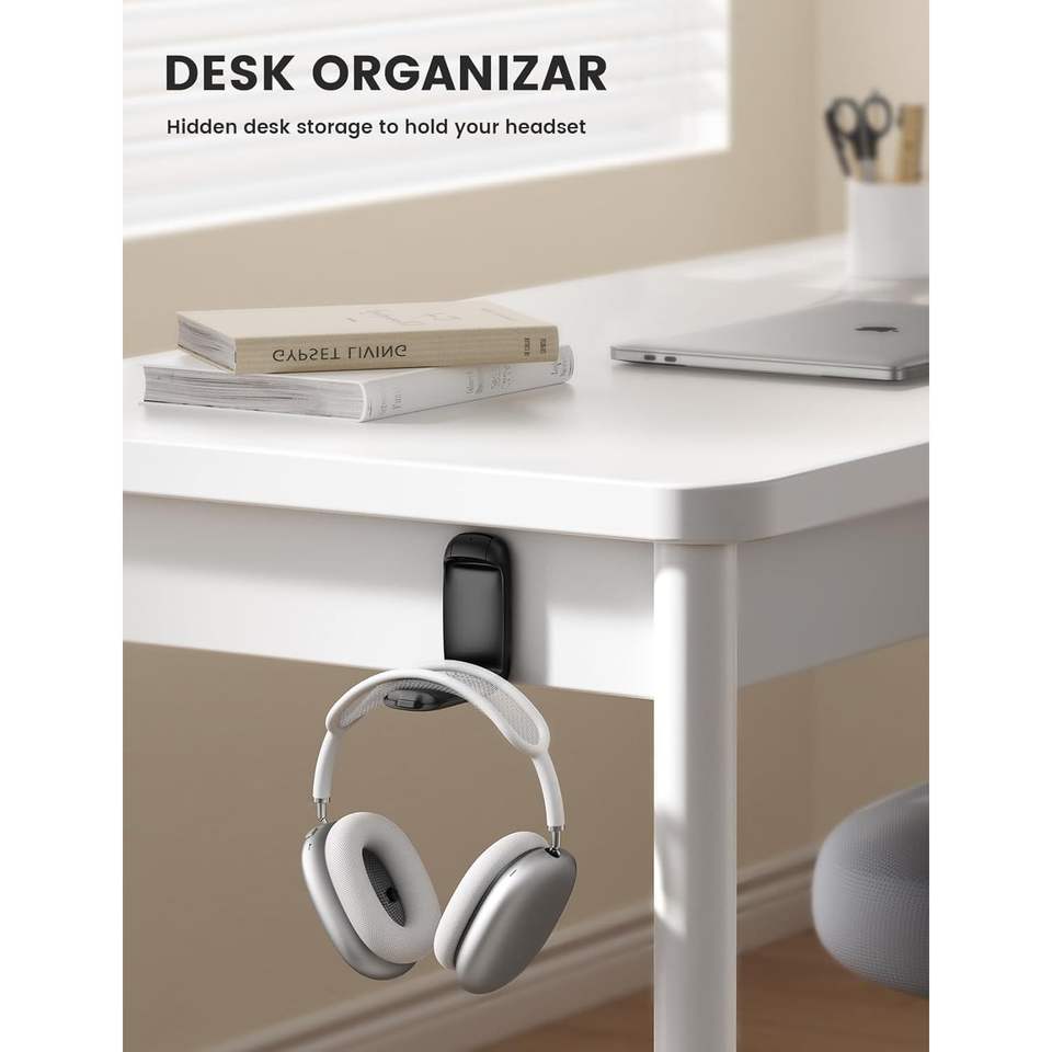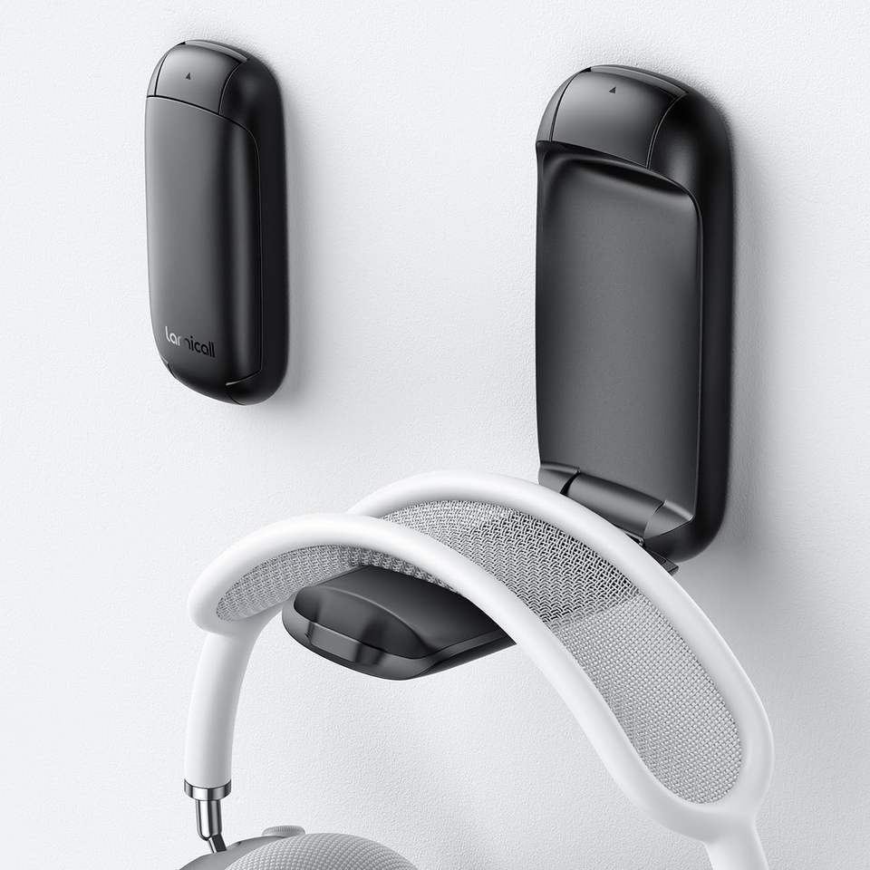 Support de casque pliable compact Lamicall, support adhésif pour casque, clip noir