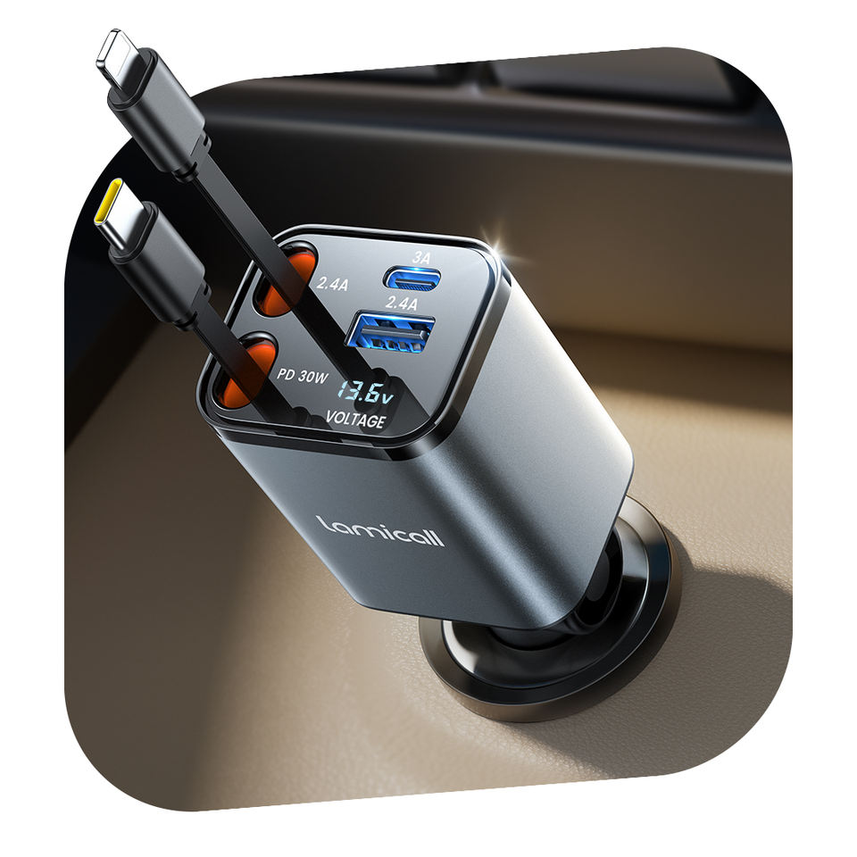 Chargeur de voiture USB-C rétractable Lamicall PT-41 OEM, adaptateur de charge rapide 69W, prise allume-cigare type C